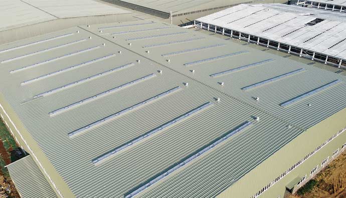 使用產(chǎn)品:三角型排煙天窗+圓拱型固定采光天窗